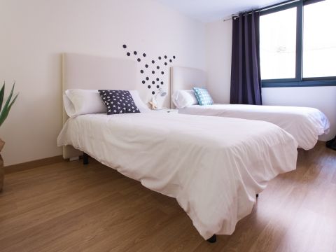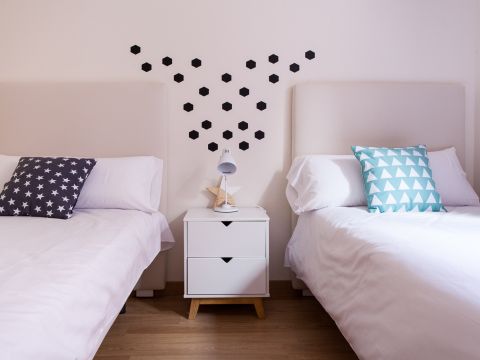 La distribución del apartamento es la siguiente: consta de dos dormitorios, uno con cama doble y otro, con dos camas individuales. El salón, la cocina y el baño, están completamente equipados y pensados para proporcionar una estancia confortable.